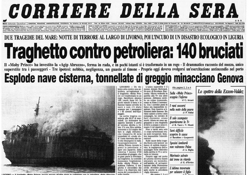 IL CORRIERE SARDO: Moby Prince: trent’anni di dolore senza giustizia
