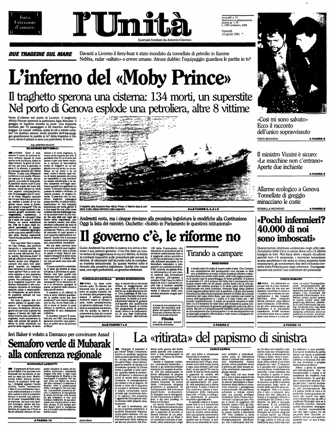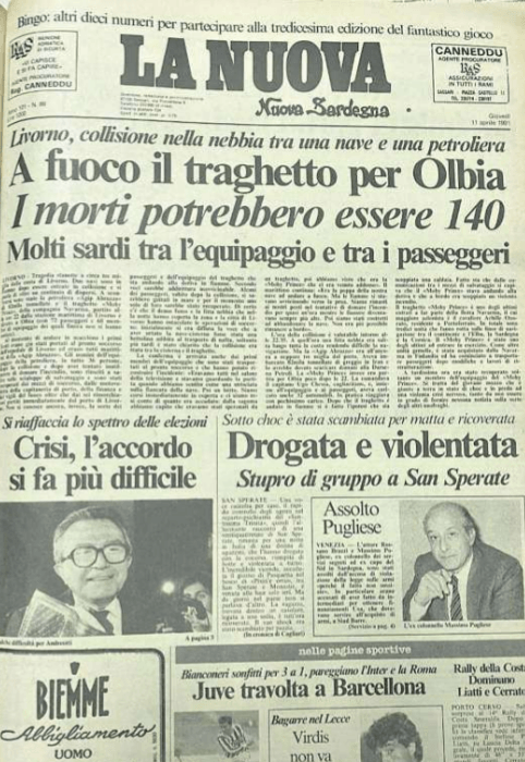 L'UNIONE SARDA: Trent'anni fa la tragedia della Moby Prince