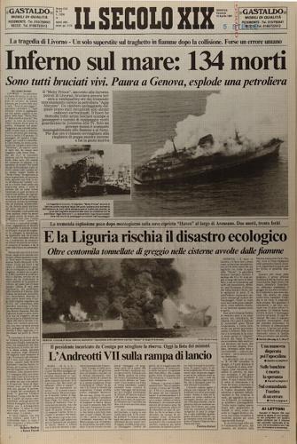 Il racconto delle cause di questo incidente, apparentemente semplice nella sua prima lettura. Una nebbia fittissima, improvvisa, che inganna un esperto e scrupoloso comandante. Un equipaggio distratto da una partita di calcio. Errori umani che ammantano di fuoco il mare.